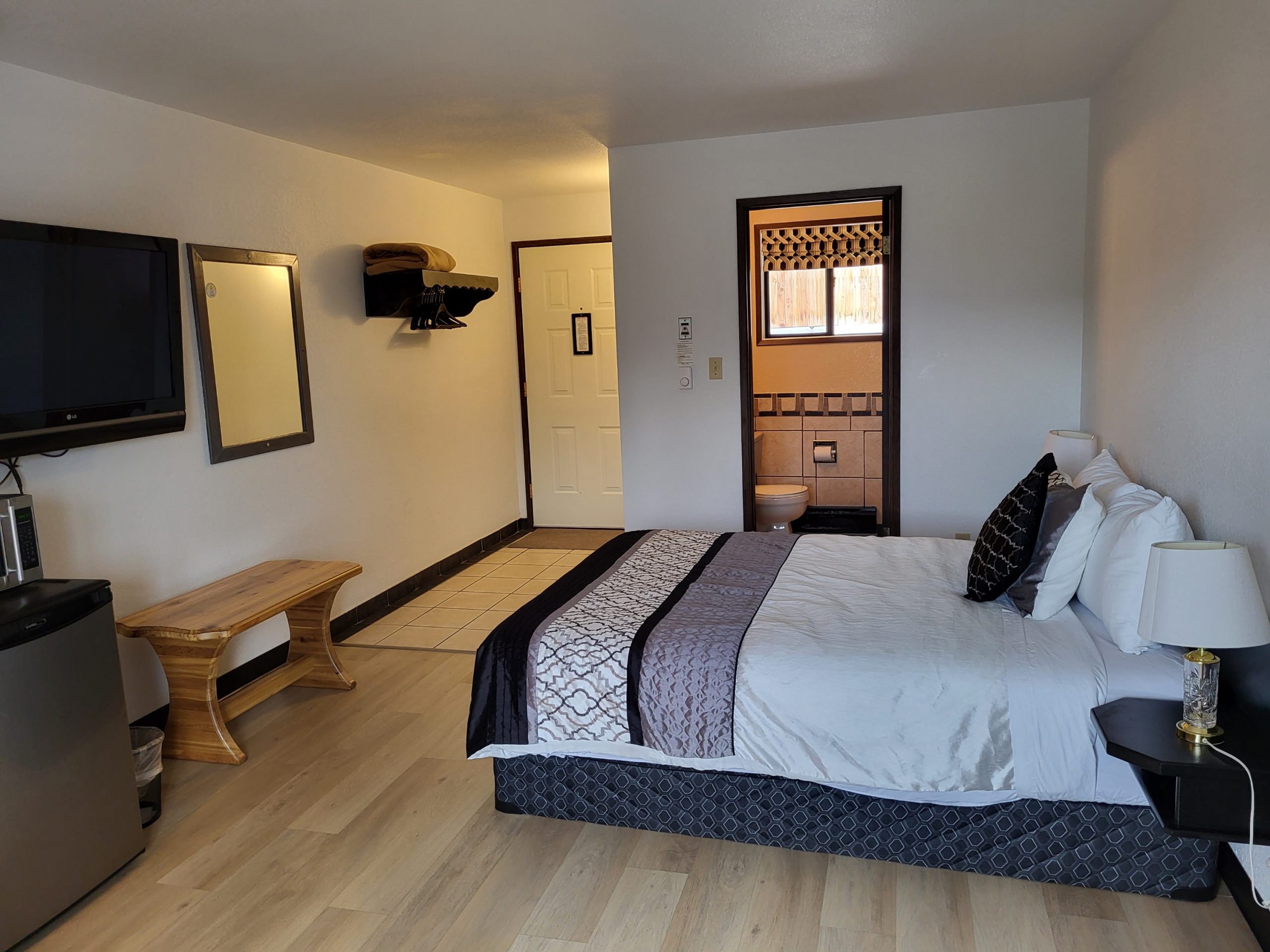 Sorry, the Alpen Motel is not pet friendly but our sister motel across the street Apple Tree Inn, has a variety of pet friendly rooms.